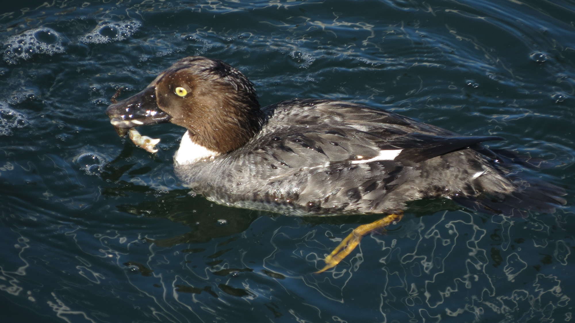 And at one point, we watched a Common Goldeneye fight a crustacean that was no match for this diving diva, and she devoured it no problem.